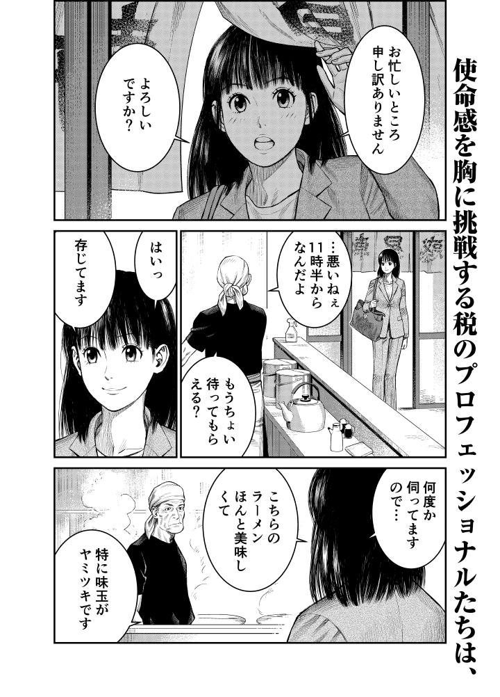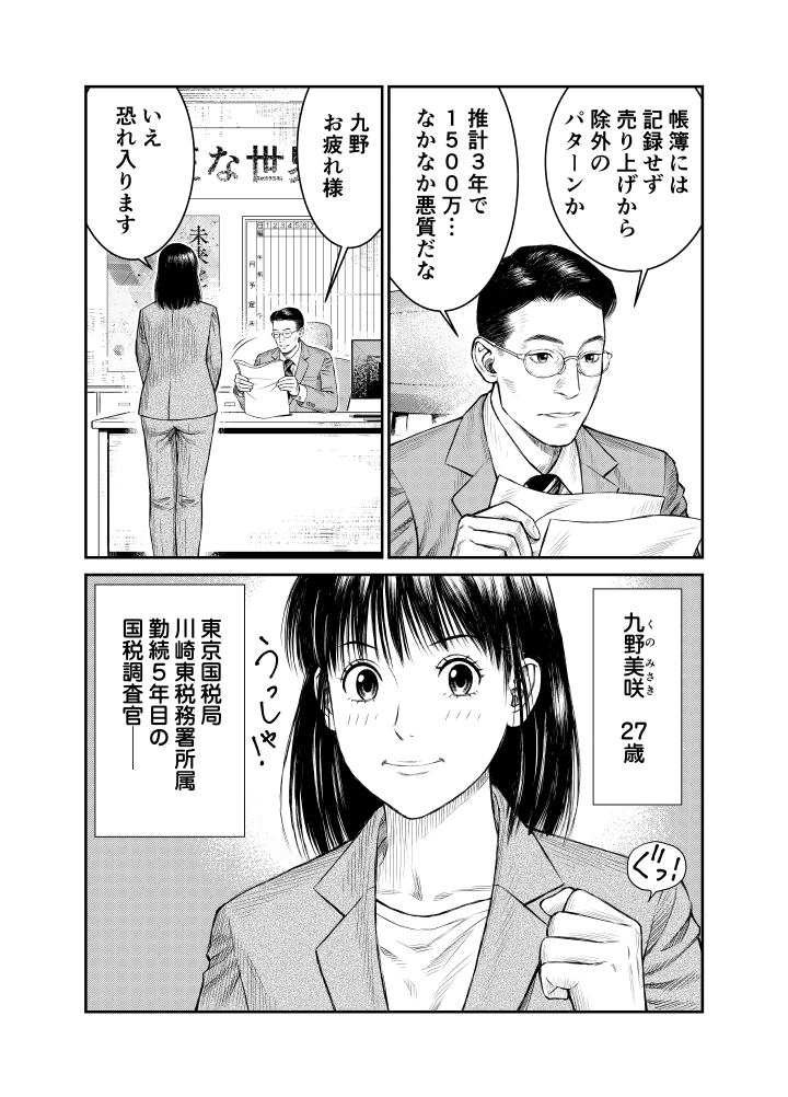 東京国税局管内の川崎東税務署で町工場の税務調査を担当。納税者の事情を正しく把握する現場主義がモットー。もちろん手心は加えない。