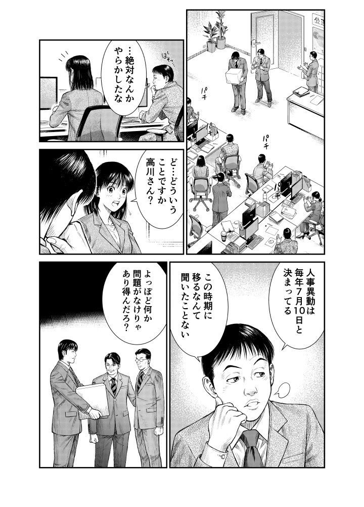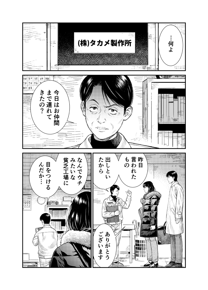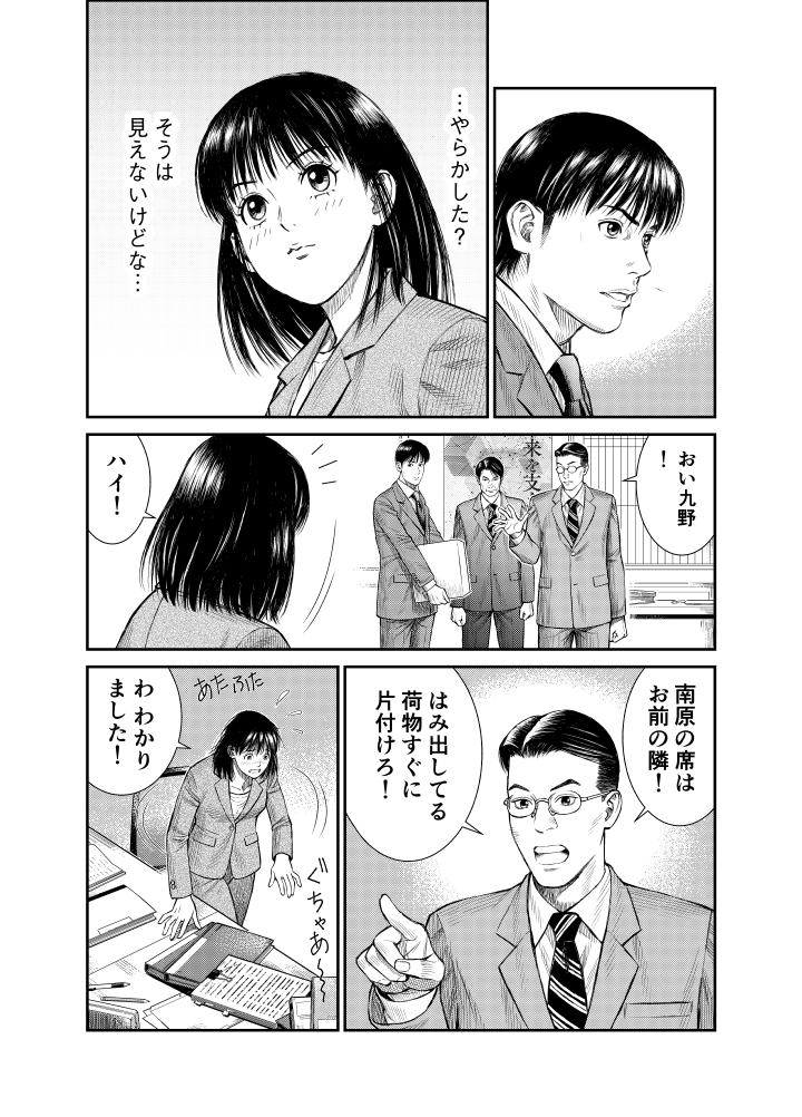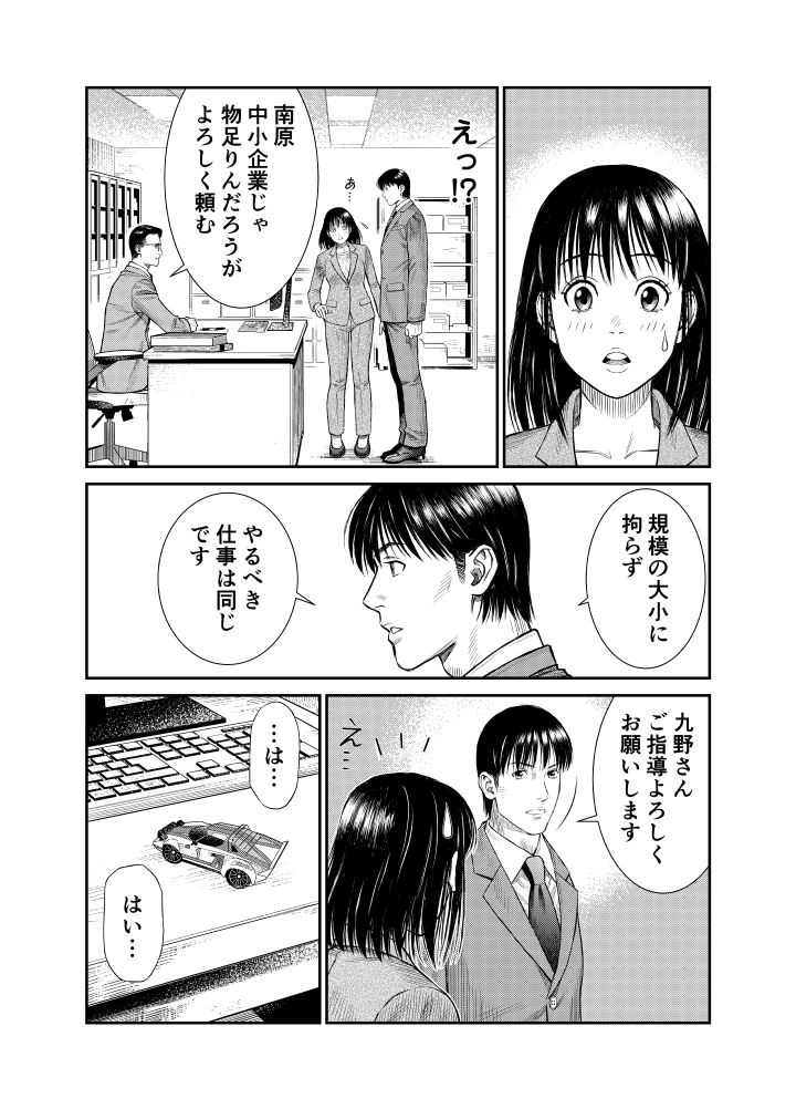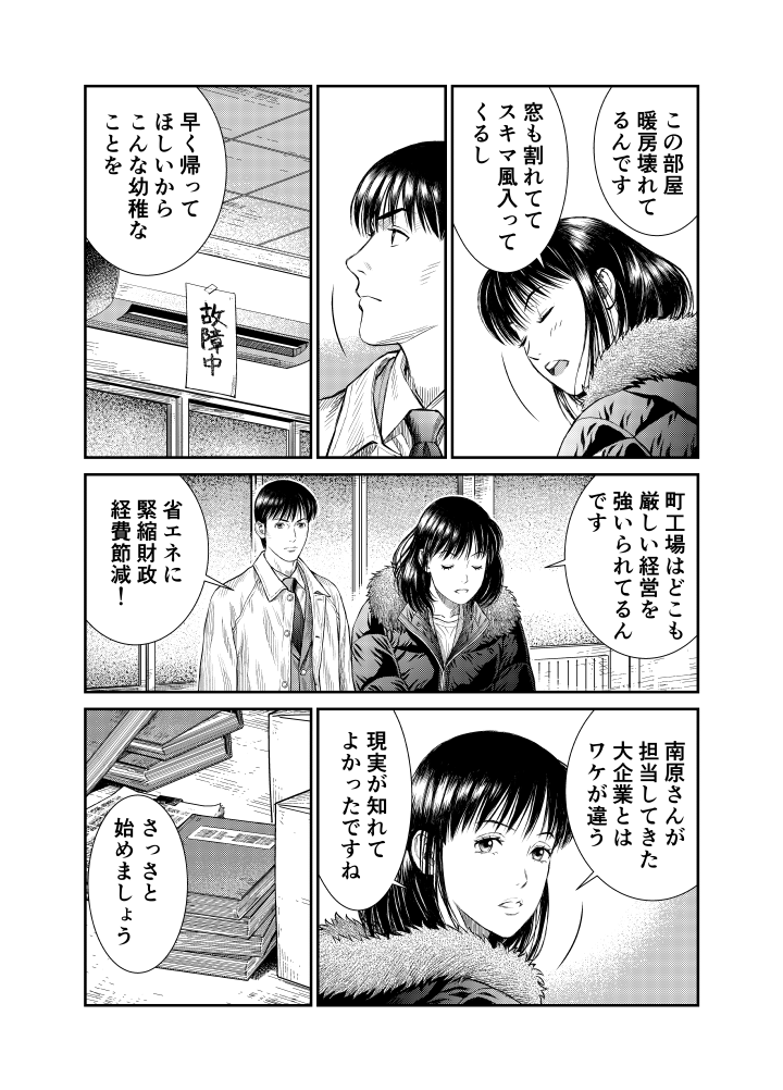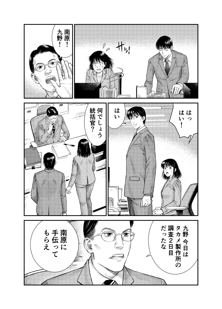 工業地帯の中小企業の調査を担当する九野にとって、本庁で大企業と渡り合ってきた南原はいささか鼻持ちならぬ存在。