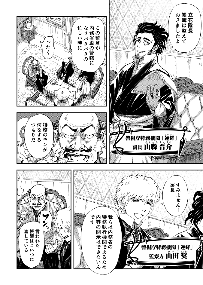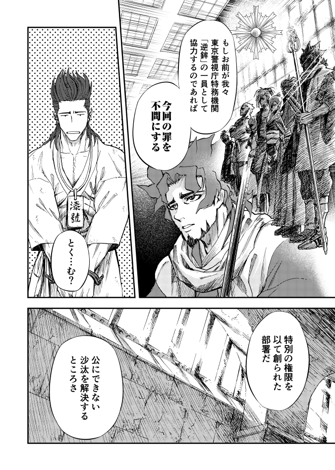 多くの凶悪犯を収監されるこの場所に東京警視庁特務機関「逆鉾」から一人の男・立花玄斎が来訪する。