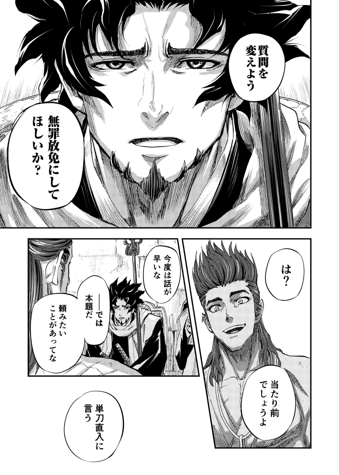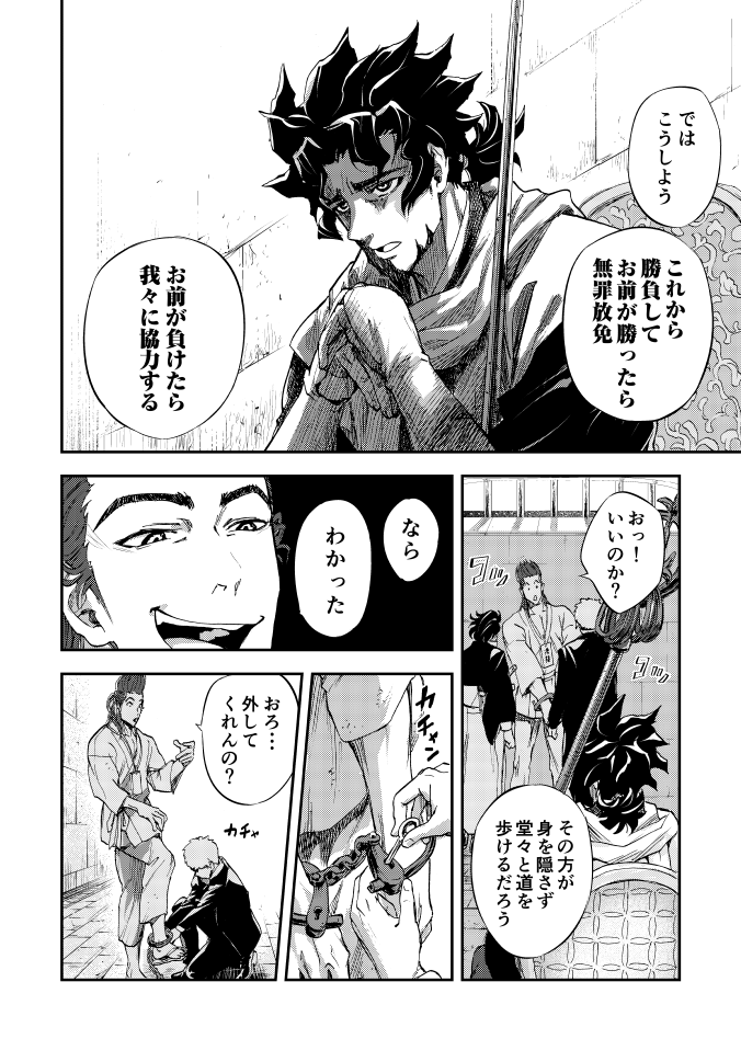 「勝負をしてお前が勝ったら無罪放免、お前が負けたら我々の協力をする。」