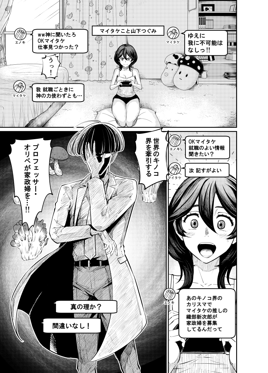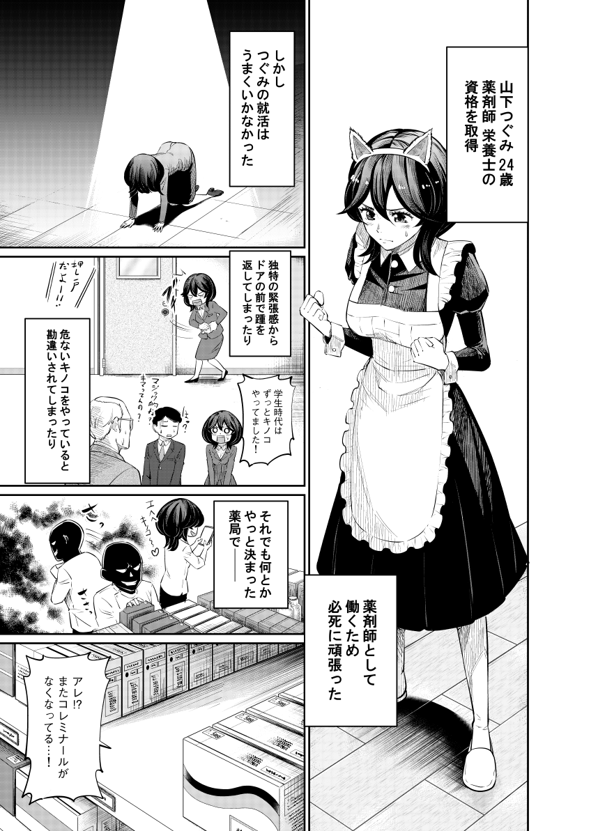 薬剤師・栄養士の資格を持つキノコオタクの木下つむぎは引っ込み思案な性格が災いし就活に苦戦。なんとか就職した薬局でも誤解からクビになってしまう。