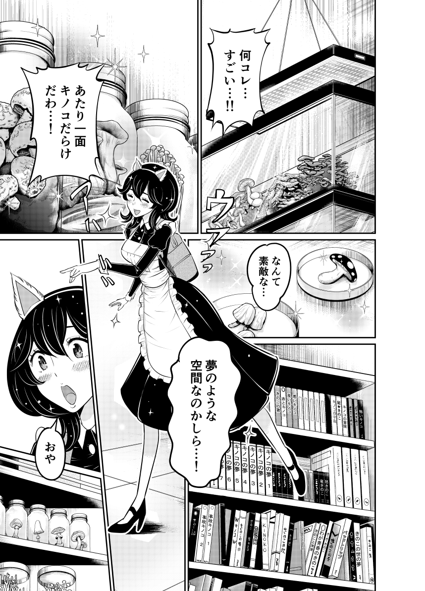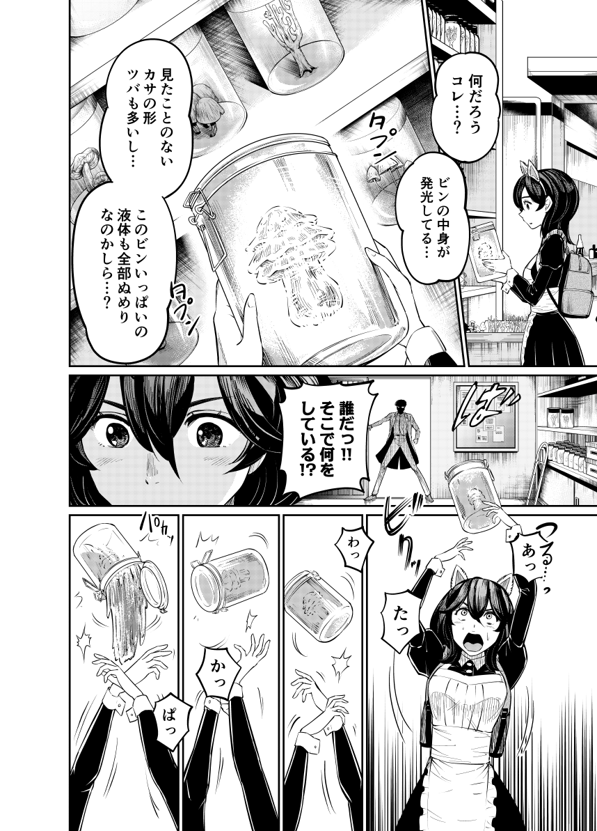 ひょんなことから憧れのキノコ博士の家政婦になるも、研究室の清掃中に光るキノコを食べてしまい…